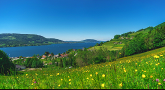 Von Seewalchen vorbei an alten Villen über den Ginzkey-Weg zum Gerlhammer Moor und über den Buchberg mit traumhaftem Ausblick über den See und das Gebirge.
